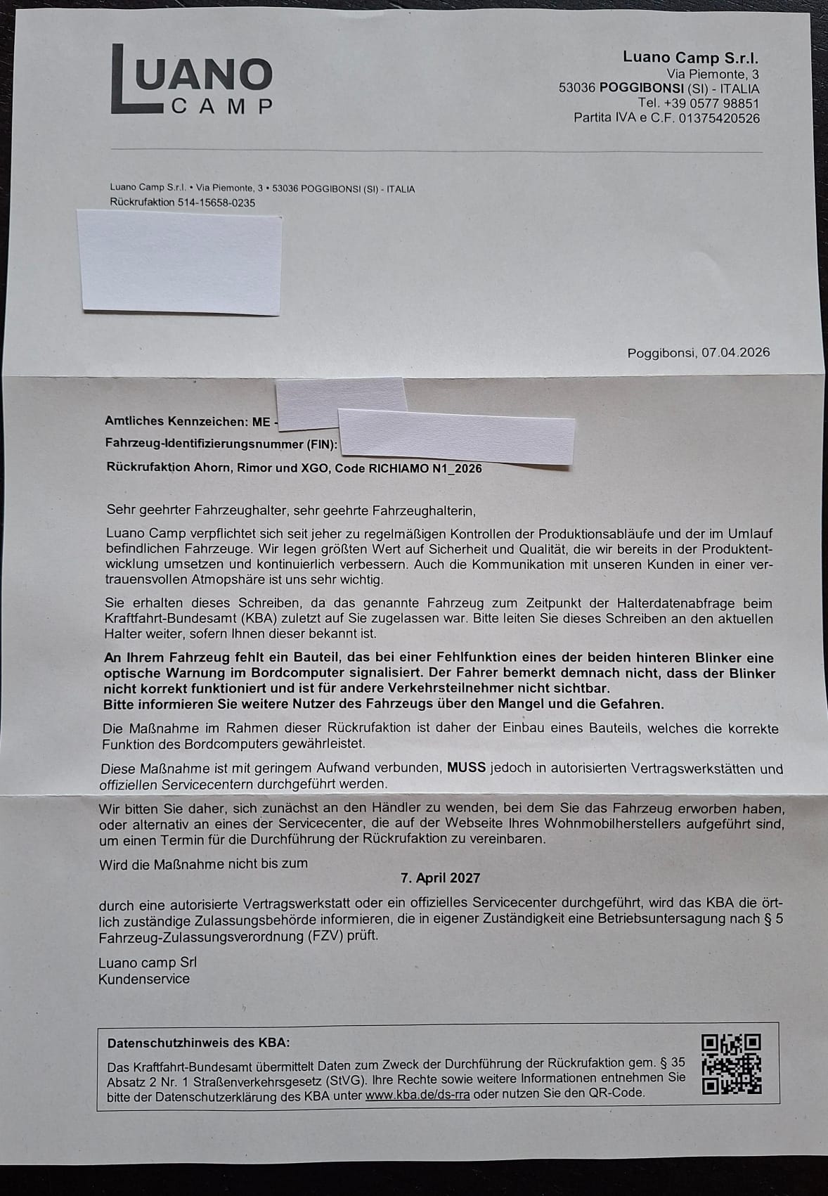Rückrufe können nicht nur vom Hersteller des Trägerfahrzeuges, z.B. Renault, sondern auch vom Aufbauhersteller wie Luano Camp oder Hymer kommen.