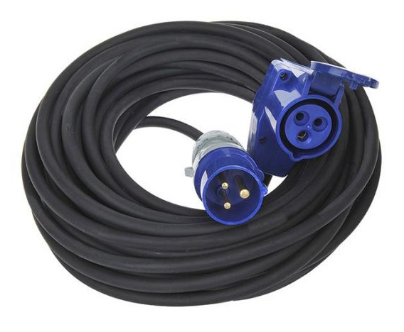 Es ist geregelt, welches Kabel verwendet werden darf. In der DIN VDE 0100-721 VDE 0100-721:2019-10 (Die alte DIN VDE 0100-721:2010-02 ist seit 17.12.2021 ungültig!) wird geregelt, dass eine Gummischlauchleitung der Norm „H07RN-F 3G 2.5 qmm“ (oder besser) verwendet werden muss. An dem einen Ende muss eine blaue CEE-Kupplung und an der andere Seite ein CEE -Stecker angeschlossen sein. Das Kabel darf maximal 25 Meter lang sein und nicht weiter verlängert werden. Das hintereinander Stecken von mehreren Kabeln ist verboten, egal wie lang diese sind! Damit verbietet sich auch das hintereinander Stecken mehrerer Wohnmobile / Wohnwagen, was man hin und wieder sieht. Alle Fahrzeuge müssen einzeln am Übergabepunkt des Platzes angesteckt werden.