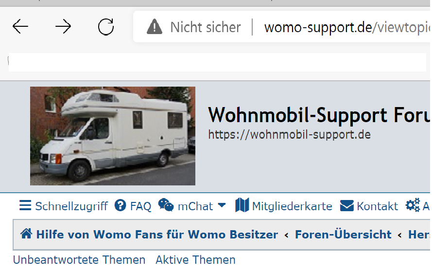 Wenn du stattdessen unsere reguläre URL https://wohnmobil-support.de verwendest, siehst du das dort wo bei dir der Hinweis stand, ein Symbol eines Schloss ist. (Mehr Infos, wenn du auf das Symbol klickst.)