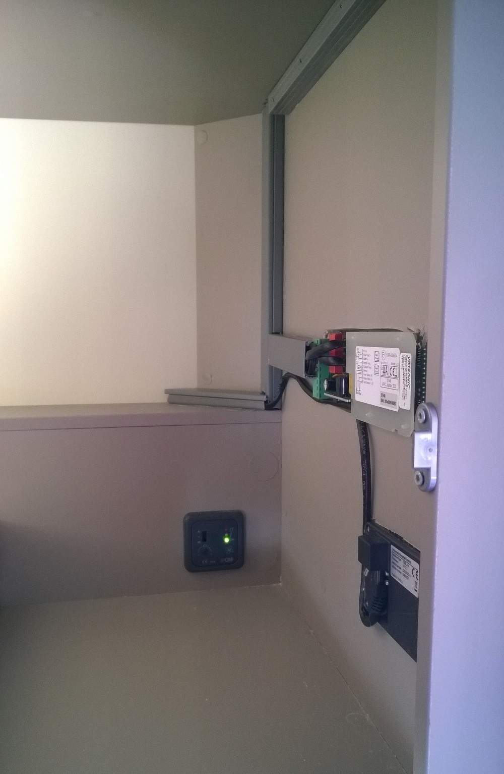 Die dazugehörigen Steuerung ist im Schrank über dem Kühlschrank, kurze Leitungen und Unsichtbar (muss man ja selten dran).