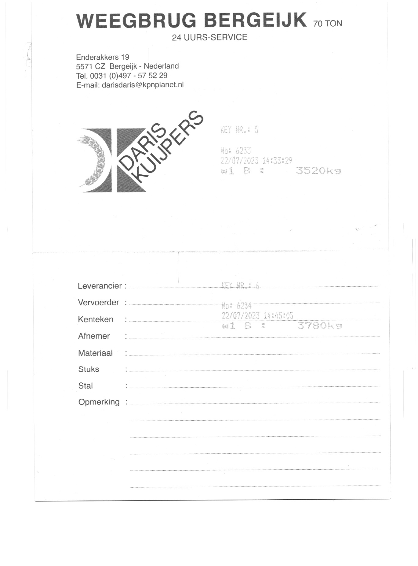 Ergebnis 3520kg , die zweite Wiegung mit leeren Gepäckanhänger zusammen.