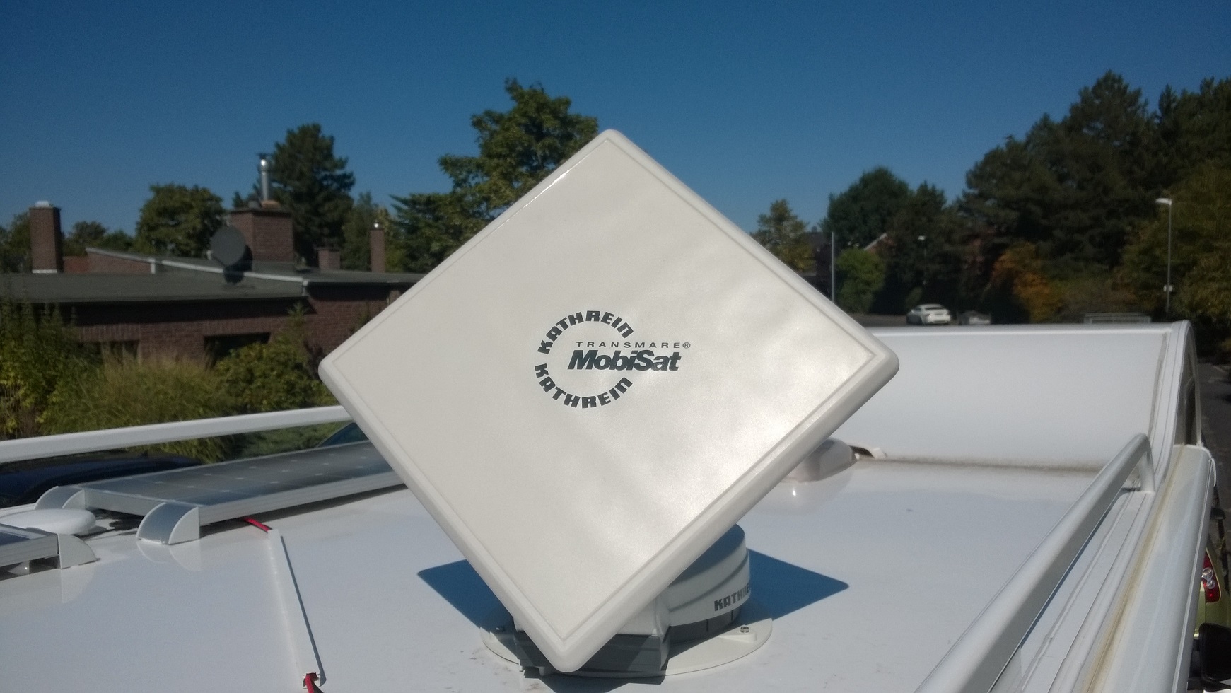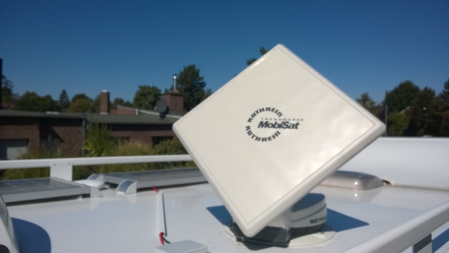 Die Automatische Kathrein Satellitenanlage auf dem Dach.