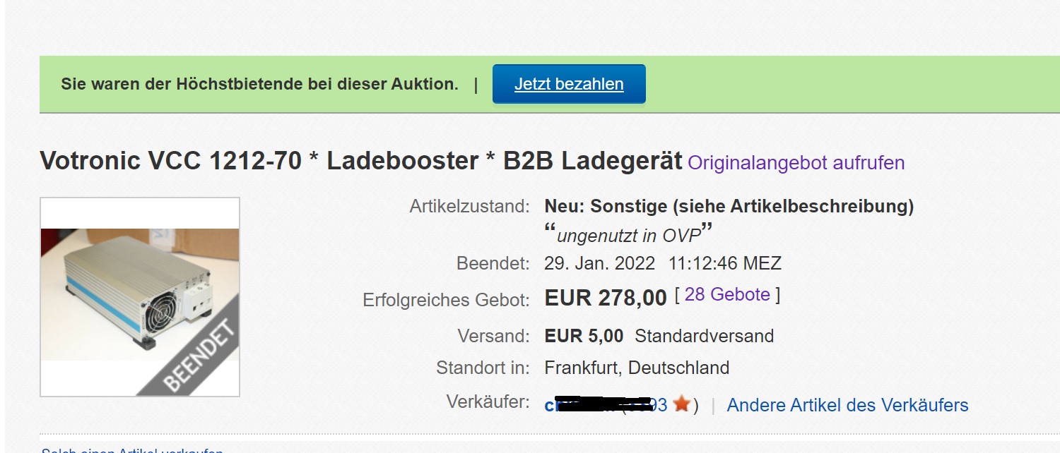 Ich werde in meinem Ahorn selbst einen Lade Booster einbauen. Ich habe mich für die Version VCC 1212 von Votronic entschieden. Dieser hat den Vorteil, das man alles mögliche in den Einstellungen frei konfigurieren kann. Einzelheiten findet Ihr in der Bedienungsanleitung: https://votronic.de/.../04.%20B2B.../3326_3328_3329.pdf Da Ahorn an den Leitungen (Querschnitt) gespart hat ist es zum Beispiel möglich den Strom zu begrenzen. Um die Überlastung der Leitungen zu verhindern , später werden die Leitungen gegen stärkere ausgewechselt. Das Teil gibt es in 30, 50, 70 und 90 Ampere Versionen, wobei die 30 Ampere Version nicht zu empfehlen ist. Das Teil bekommt man bei egay hin und wieder sehr Preiswert, man muss sich nur Zeit lassen. Habe das die 70Amp. Version geschossen. Immerhin habe ich ein Angebot von Ahorn für über 500.-€ (50Amp) für das Gerät und 350.-€ für den Einbau bekommen. Der Einbau dauert ca. 20 Minuten. Der Ladebooster wird in der Nähe dar Batterie mit 4 Schrauben befestigt und 3 Kabel werden angeschlossen.