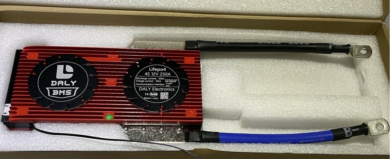 Ein Daly BMS Modul 200Amp. oder besser 250Ampere (mehr Reserve) Ich habe jemanden der liefert die 250er Version für 210.-€ Bei Interesse PN an mich. oder Amazon