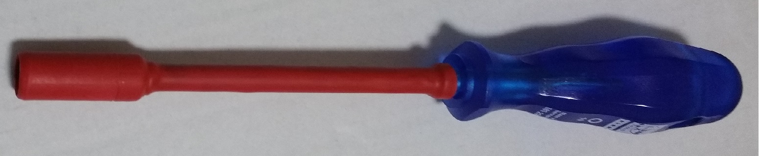 Ich habe eine Schraubenschlüssel für die Montage der Zellen, mit zwei Lagen Schrumpfschlauch isoliert, um Kurzschlüssen vorzubeugen.