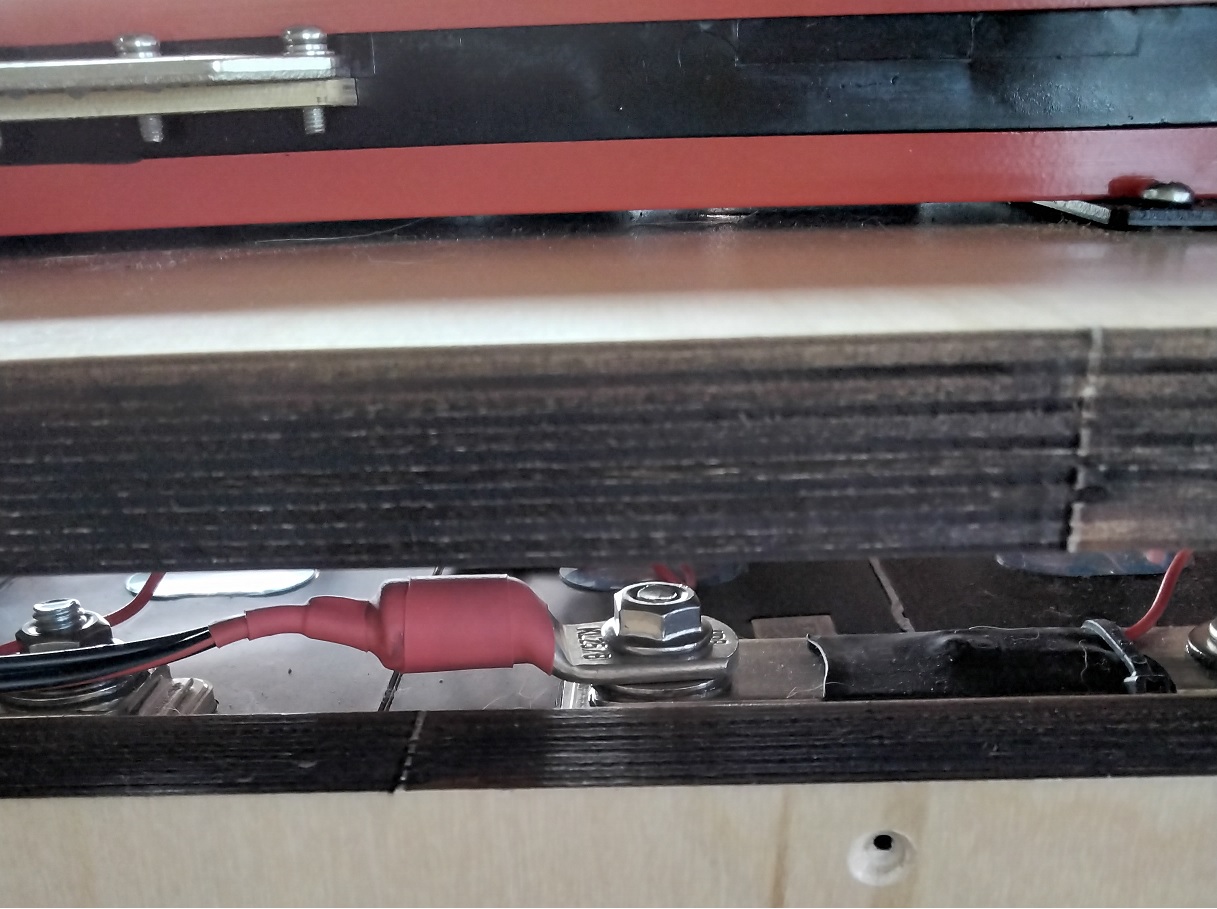 Ich habe jetzt einmal die Zellenverbinder in der Mitte mit Schrumpfschlauch isoliert. Diese sind aus Kupfer und außen dünn verzinnt, damit diese nicht oxidieren.
