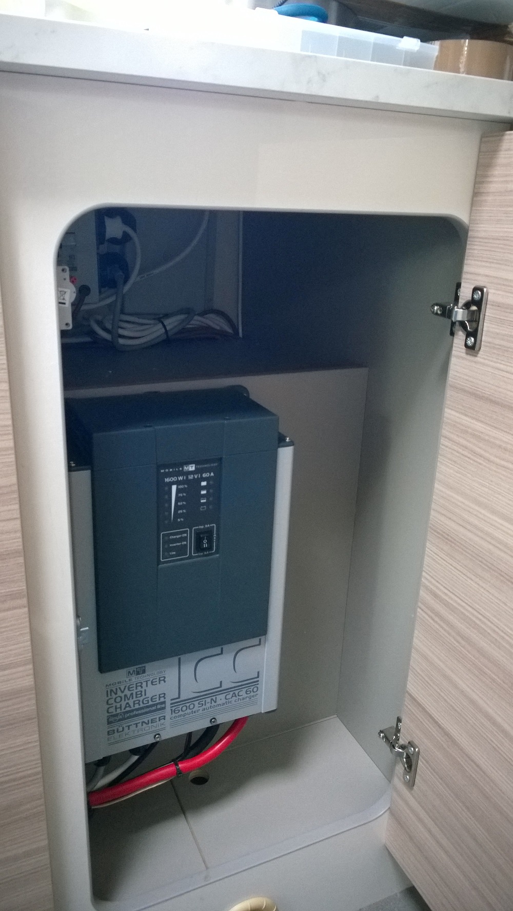 Der Büttner Konverter kommt auch noch rein, allerdings habe ich mich erstmal für die 1600 Watt Version entschieden. Sollte dieser nicht ausreichen, ich habe auch die 3000 Watt Version hier vorrätig. Da dies Gerät eine Kombination auf Stromwandler und Ladegerät ist, spare ich mir das Ladegerät.