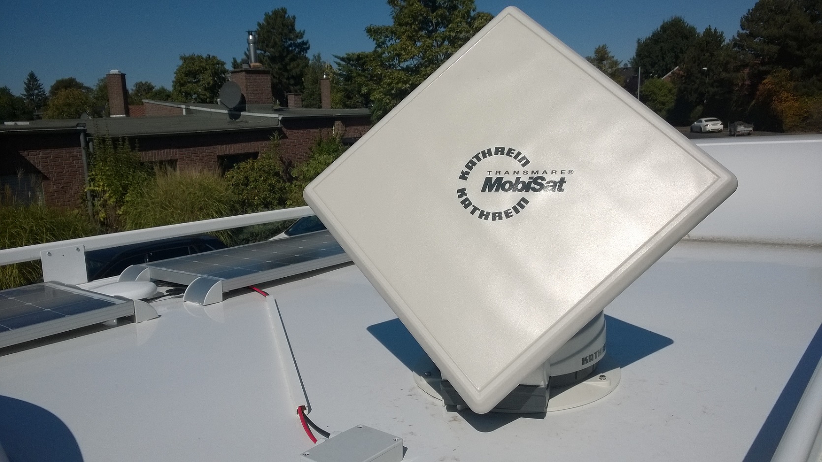 Die Automatische Kathrein Satellitenanlage auf dem Dach.