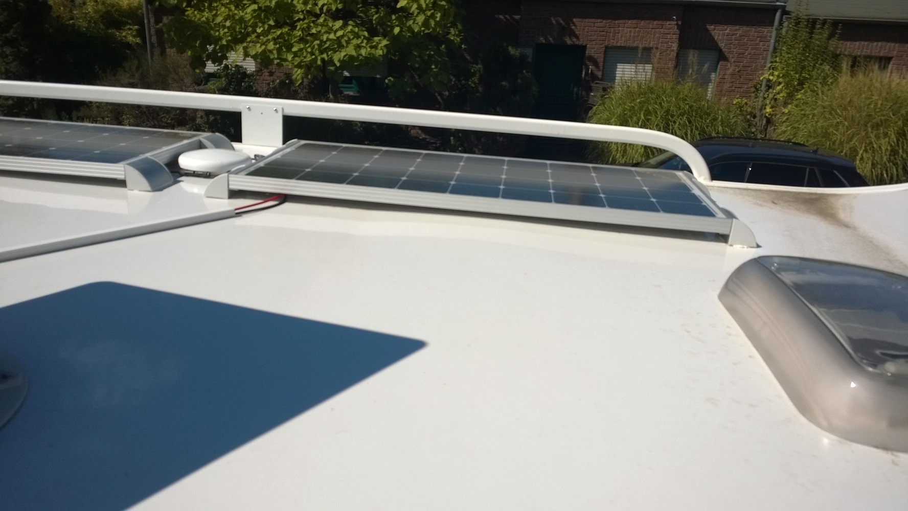Das Dach, Truma Aventa Comfort Klimaanlage (von Ahorn montiert) , 2 Alden Solar Panel mit einer anständigen, hochwertigen Dachdurchführung und die Autom. Kathrein Sat Antenne.