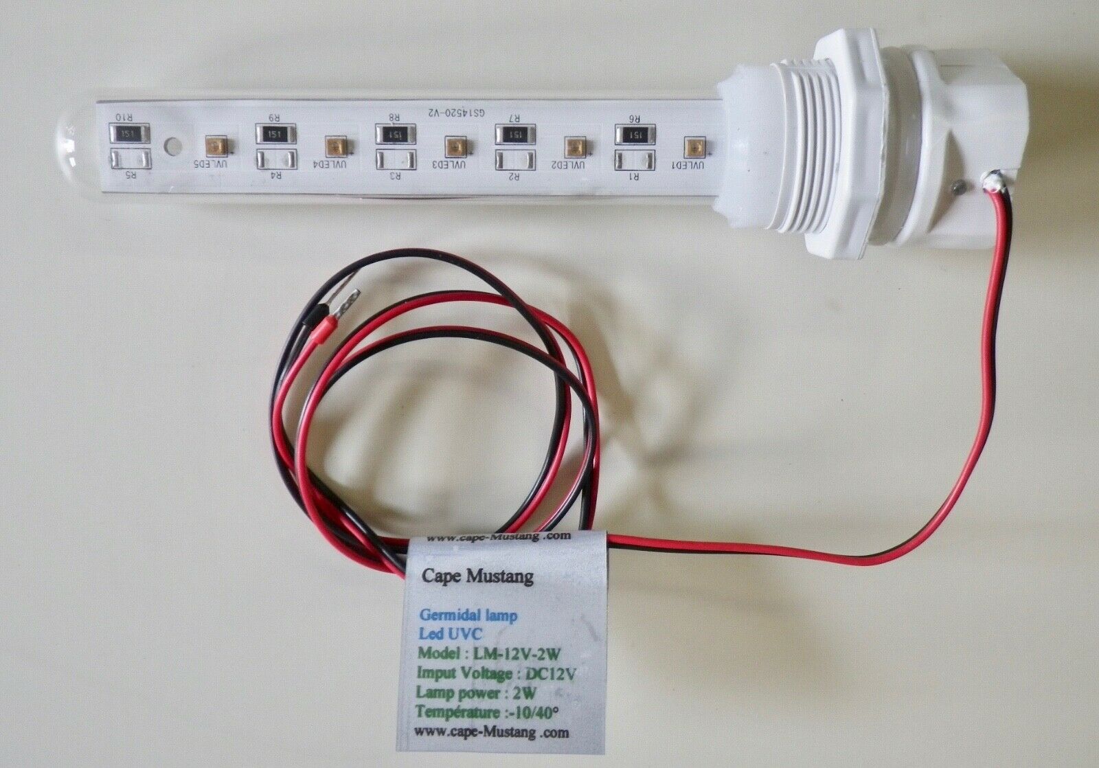 UV Strahler dieser hat 2x 2,5 Watt, der Anbieter hat auch welche mit 1x2,5 oder 2 Watt im Angebot. Beim Bestellen darauf achten eine 12 Volt Version zu kaufen. Bezugsquelle